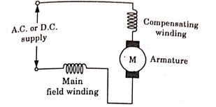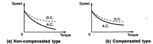 - Compensated Type (High H.P.)- The Compensated type has distributed field winding consisting of main field winding and compensating winding.