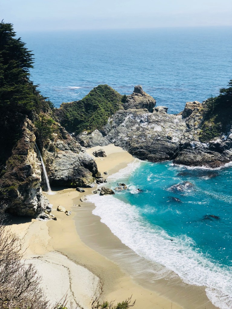 It is the best photographic waterfall on the sandy shores of McWay beach. It originally flows straight into the Pacific Ocean but in 1983 an incident occurred, rocks dropped into the water which created a beach. The waterfalls also provide water to McWay creek. Gray whales, seals, and birds like oystercatchers and pelicans can be seen between December to April at the shore.