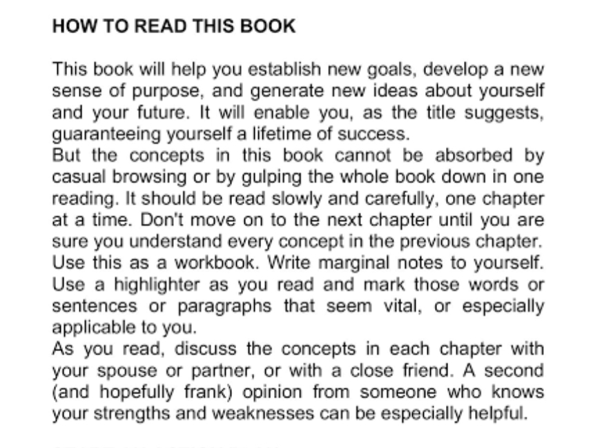This book was recommended to me. I had high hopes on it that it will be as good as they said. And it turned true. It is one of the wonderful life-changing books. This book defines success. It gives us solutions to come from failure to success. Its easy language of description makes it easier to grasp the concepts
