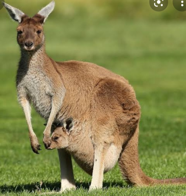 Kangaroos are large marsupials that are found only in Australia. They are identified by their muscular tails, strong back legs, large feet, short fur and long, pointed ears. Like all marsupials, a sub-type of mammal, females have pouches that contain mammary glands, where their young live until they are old enough to emerge.