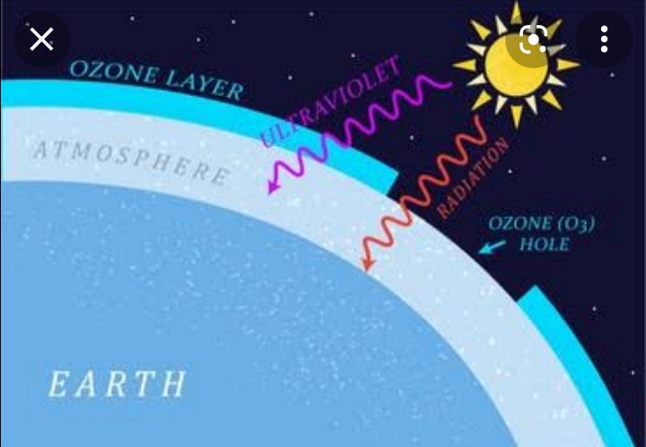 The electromagnetic radiation emitted from the sun includes ultraviolet radiation, which is potentially harmful to most living things since it can damage DNA. The ozone layer screen out the sun’s harmful ultraviolet radiation. Even 1% reduction in the amount of ozone in the upper stratosphere causes a measurable increase in the ultraviolet radiation that reaches the earth surface. If there was a no ozone at all ,the amount of ultraviolet radiation reaches us would be catastrophically high. All living things would suffer radiation burns,unless they were underground, or in the sea.