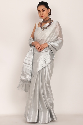 printed sarees with a simple sleeveless blouse is a perfect outfit for any occasion.