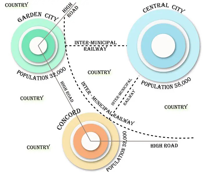 - Connectivity and Expansion: Garden Cities were to be connected by a network of railways, allowing easy travel between them and facilitating the exchange of goods and services. As each Garden City reached its population limit, new Garden Cities would be established nearby, forming a network of interconnected communities.
