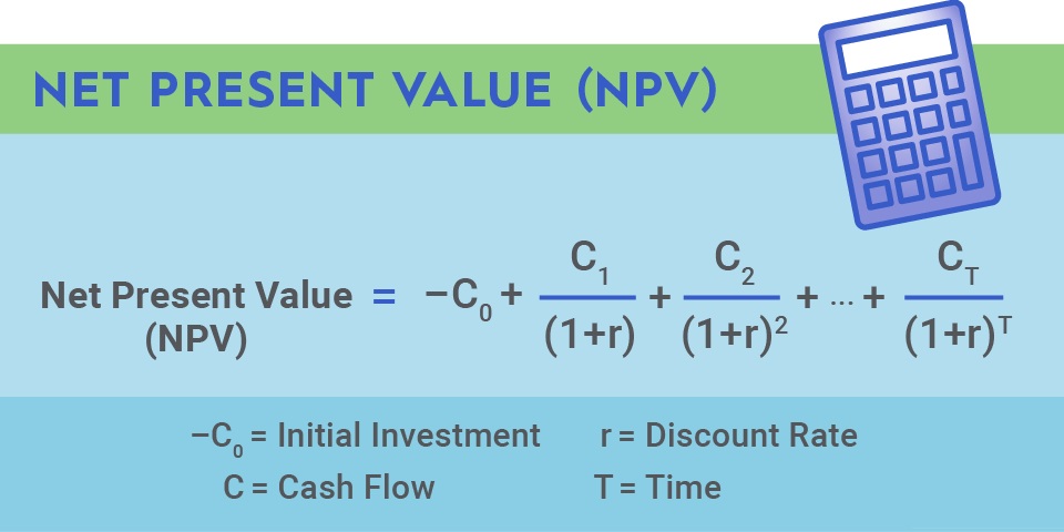 NPV=C0+Ct(1+r)tNPV = -C_0 + \sum \frac{C_t}{(1+r)^t}NPV=−C0​+∑(1+r)tCt​​