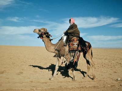 Camels are among those few creatures with which humans have forged a special bond of dependence and affinity. Traditional lifestyles in many regions of the Middle East, North Africa, and Central Asia would never have developed without the camel, around which entire cultures have come into being. This camel-based culture is best exemplified by the Bedouin of the Arabian Peninsula—the native habitat of the dromedary—whose entire traditional economy depended on the produce of the camel. Camel’s milk and flesh were staples of the Bedouin diet, and its hair yielded cloth for shelter and clothing; its endurance as a beast of burden and as a mount enabled the Bedouin to range far into the desert. The mobility and freedom that the camel afforded to desert Arabs helped forge their independent culture and their strong sense of self-reliance, and they celebrated the camel in their native poetic verse, the qaṣīdah, in which the nāqah (female camel) was a faithful, unwavering mount. Among these nomadic people, a man’s wealth was measured not only by the number of camels he possessed but also by their speed, stamina, and endurance.