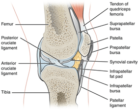 The knee joint is the tibiofemoral synovial hinge joint. This seems a bit complex. This can be easily understood by splitting each term.