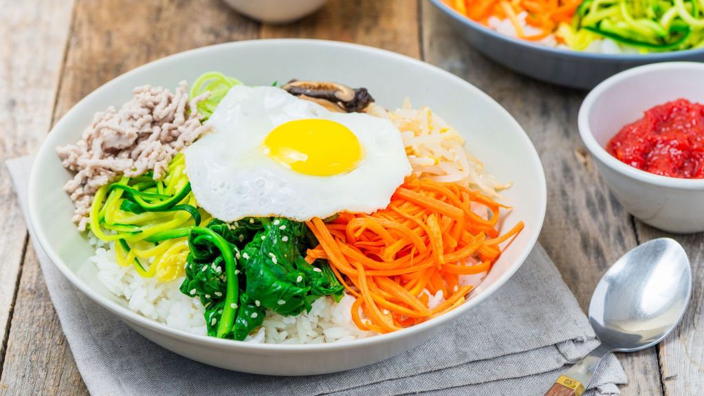 Bibimbap: It is a blend of rice along with desired vegetables, eggs, fried mushrooms, soy sauce, and beef. The color combination of the bowl filled looks great and attractive. Itโs definitely added to my favorite list.
